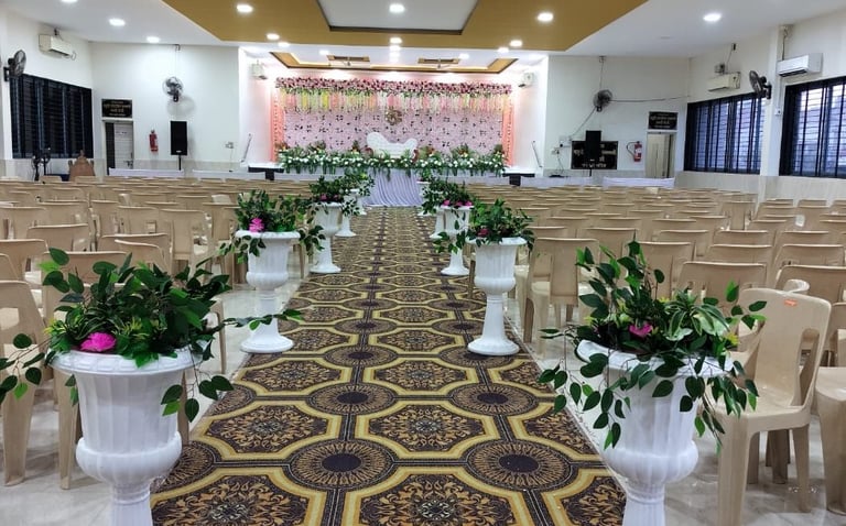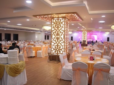 Celebrate your special day at our grand wedding hall, beautifully designed with modern facilities, elegant decor and spacious seating, ensuring unforgettable memories for you and your guests.